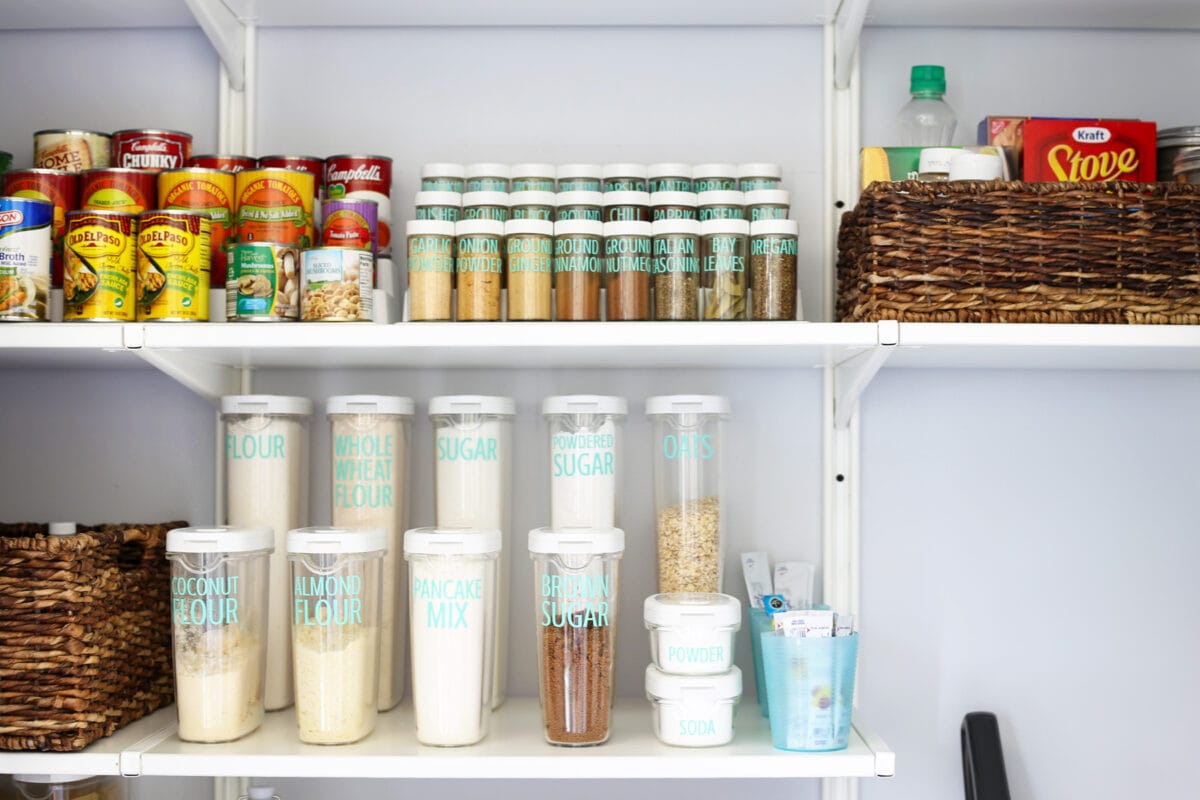 - Clear pantry containers and spice jars are a great way to make the space look clean and keep up with inventory.