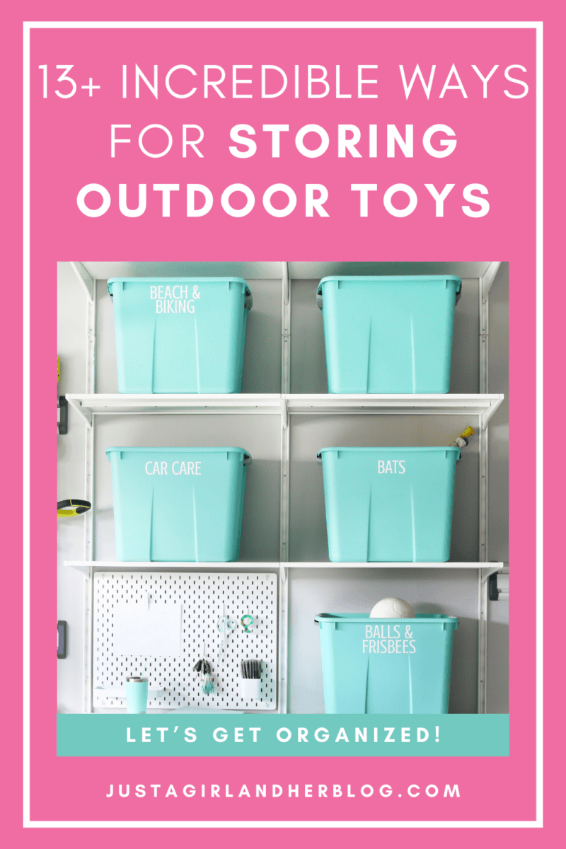 If you’ll be organizing your outdoor toys in the near future and these ideas were helpful, be sure to pin the image below so you can reference them later!