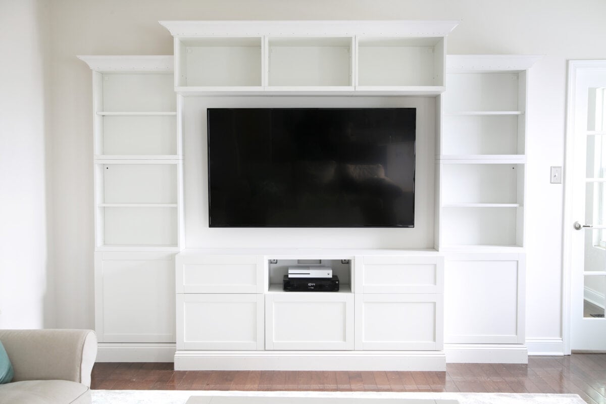 IKEA hack! We created a DIY entertainment system using the IKEA’s BESTA Planner for a custom look that can be completed in a weekend!