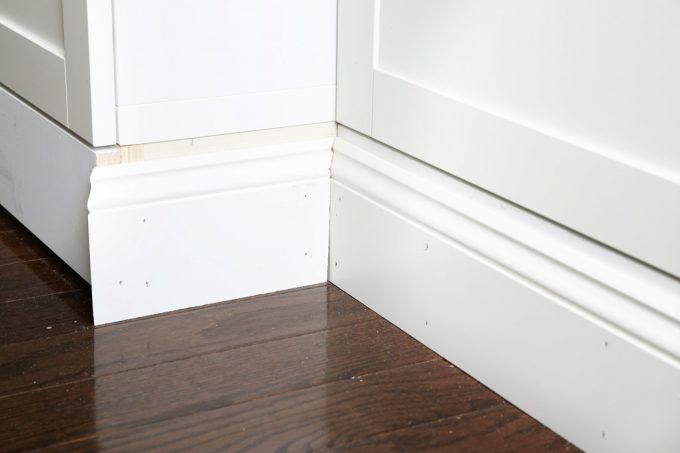 I noticed on the closeup of the baseboards, there looks like there’s a small gap between the top of the baseboard and the bottom of the drawers/doors. Did you do anything special to cover that up or did you just paint it?