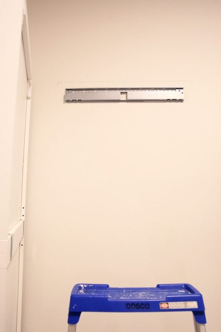 The rail system makes it easy to make sure I installed the rail perfectly level and exactly where I wanted it to be. I used one rail on each of the side top shelves, and I made sure to tie each rail into at least one stud so that it was nice and sturdy.