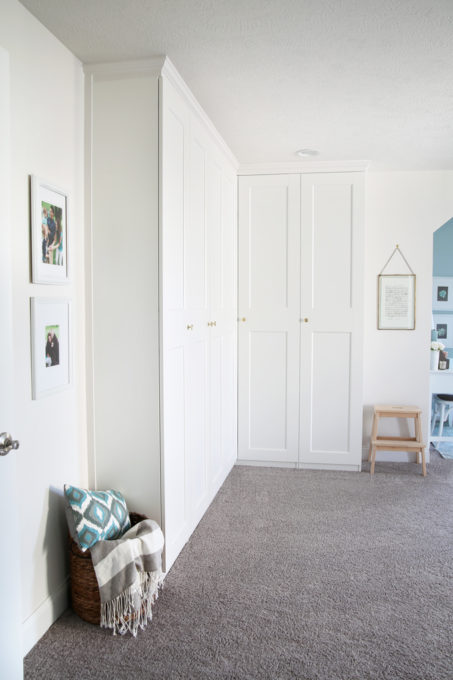 Hi Abby, love this use of the pax system. Curious to know, did Donnie cut the baseboard so that that unit could sit flush against the wall? And did you decide to sit the unit directly onto the existing carpet or cut the carpet? Thanks so much for sharing your ideas. You are truly an inspiration!