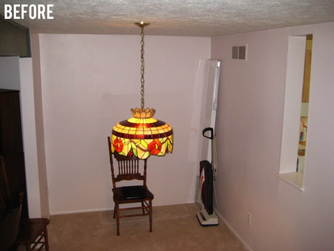 When we moved in, the dining room had one of the most hideous looking light fixtures I had ever seen. (And just in case you thought it was charming in its own quirky way, do not be fooled… it was plastic, not even glass!)