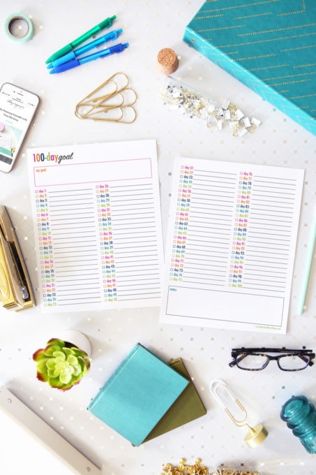 As I often do, I created a simple printable to go along with this 100-day goal challenge.