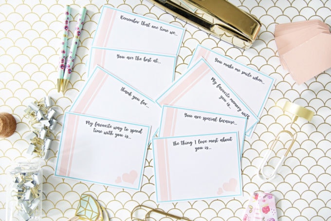So in order to make the kids’ lives a little easier and the moms’ hearts a little fuller, I created pretty printable cards with simple prompts for the kids to fill out, sharing the things that mean the most to them about their mom (or grandma or caregiver or whomever)!