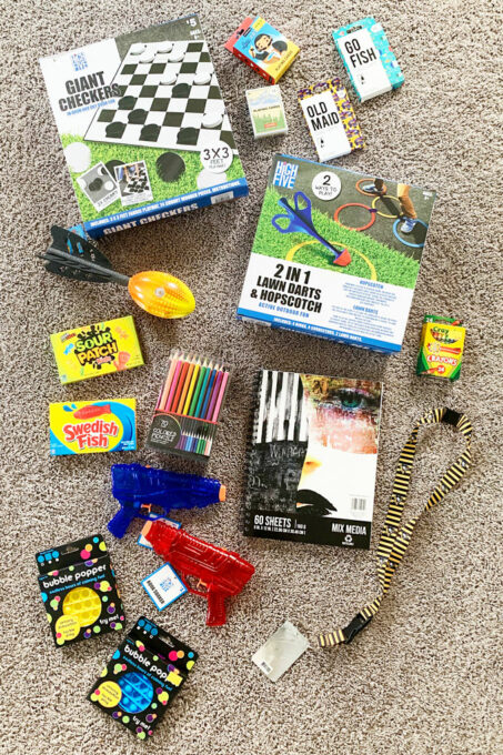 I usually hit up the dollar store or 5 Below to grab some small items to give to the boys along the way.