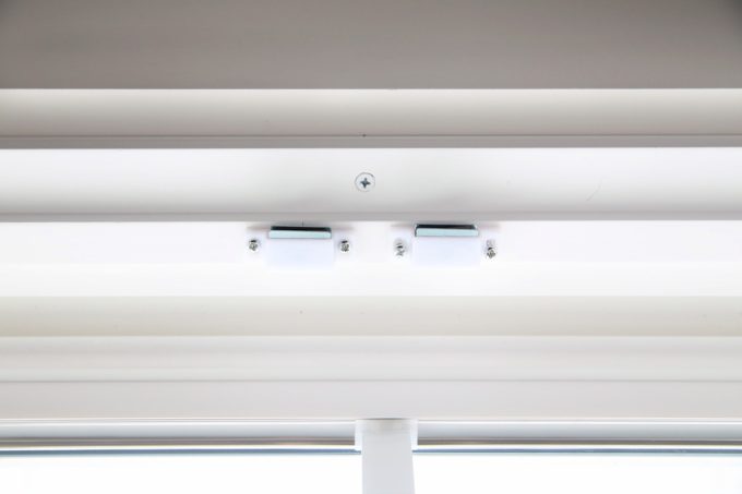 The shutters came with magnets, and we had the flexibility to attach them anywhere we wanted depending on what was best for our home’s setup. We ended up attaching the magnets to the top of each swinging shutter as well as the wood shutter frame.