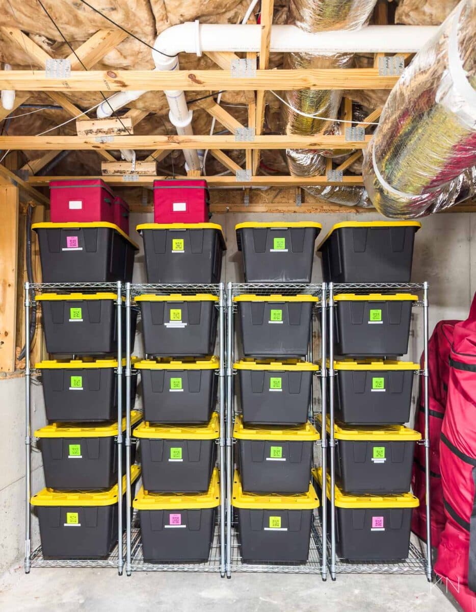 Storing items by type makes it easy to find the exact holiday decor pieces you’re looking for when it comes time to decorate for Christmas.