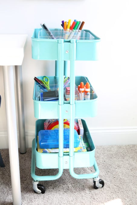 Use a rolling cart to hold art supplies.