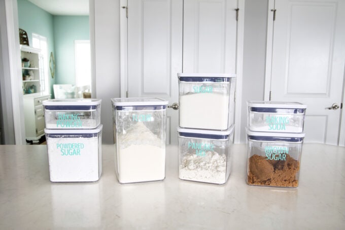 Well first, I try to avoid this problem as much as possible by choosing containers that hold an entire standard size package of something. So for example, flour typically comes in a five pound bag, so I made sure that my flour container could hold five pounds worth of flour.
